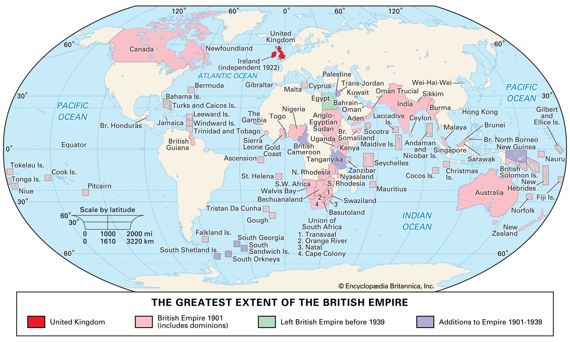 British Empire, a worldwide system of dependencies—colonies, protectorates, and other territories—that over a span of some three centuries was brought under the sovereignty of the crown of Great Britain and the administration of the British government. The policy of granting or recognizing significant degrees of self-government by dependencies, which was favored by the far-flung nature of the empire, led to the development by the 20th century of the notion of a “British Commonwealth,” comprising largely self-governing dependencies that acknowledged an increasingly symbolic British sovereignty. The term Commonwealth was embodied in statute in 1931. Today the Commonwealth includes former elements of the British Empire in a free association of sovereign states.